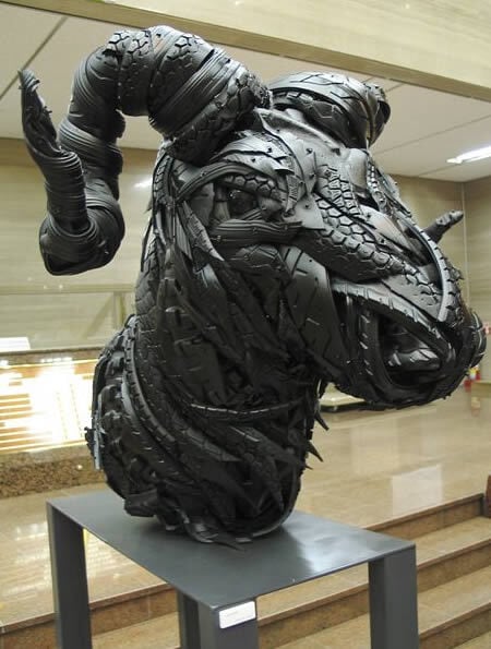 Mas o escultor alemão Mirko Siakkou-Flodin conseguiu ousar ainda mais e viu nos pneus, metais e garrafas que encontrou no lixo uma oportunidade para fazer essas esculturas espetaculares. Confira: