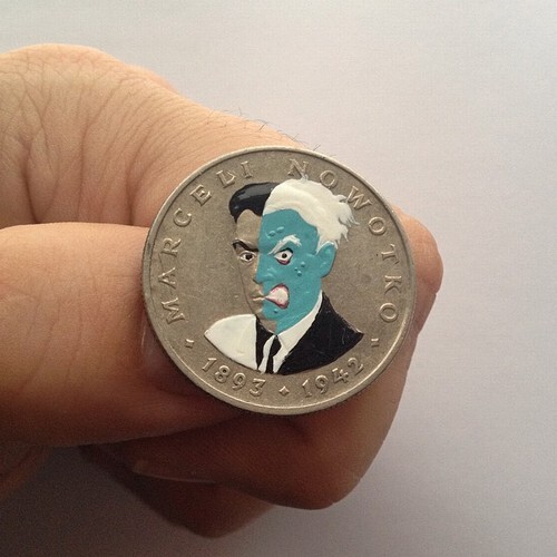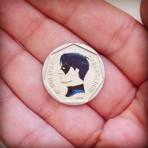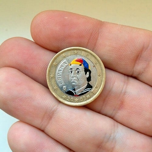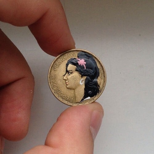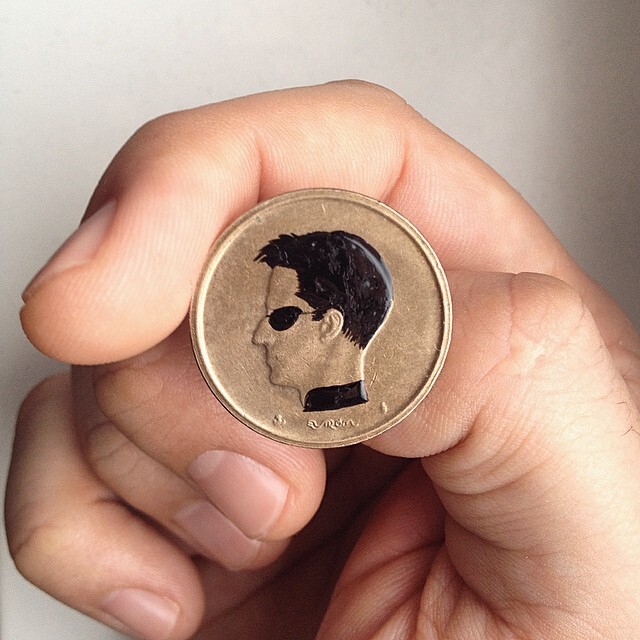 Andre Levy , que vive atualmente em Frakfurt, na Alemanha, transforma moedas de diferentes países em pequenas obras de arte. O projeto, chamado